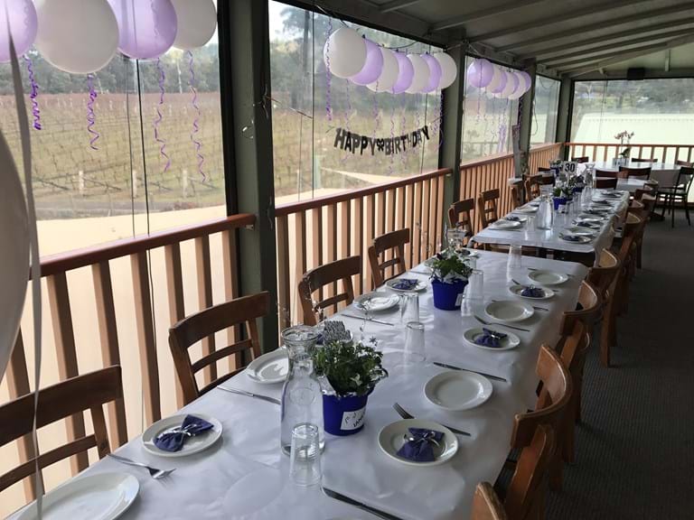 Our Winery is all about excellent wine, views, relaxation, friendship and naturally, good food to go with it. The site offers a casual and friendly atmosphere. The Vineyard Marquee is ideal for groups, offering room to move around and some privacy. It is an all-weather marquee so you don't need to worry about the weather forecast. We also offer our enclosed Upstairs Veranda which has views overlooking the vines. It holds up to 30 people. The Downstairs Veranda is also available and seats 25 people.